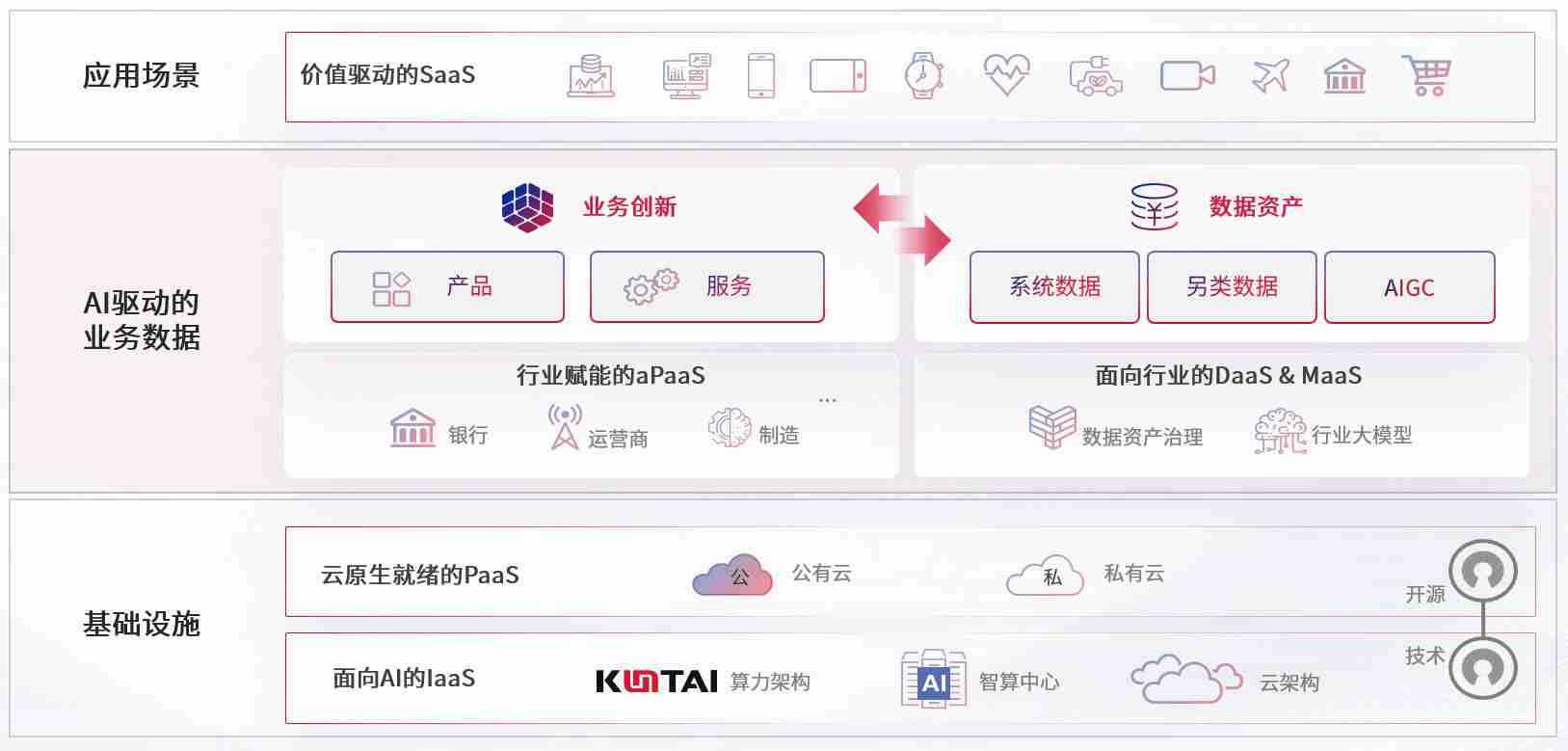 数字时代,,,围绕企业数字化转型的关键要素,,红豆钱包数码开创性的提出数云融合战略和技术体系框架,,,,着力在云原生、、、数字原生、、、、AI原生和信创产业上架构产品和服务能力,,,,为处在不同数字化转型阶段的快消零售、、汽车、、、金融、、、、医疗、、政企、、、教育、、、、运营商等行业客户提供泛在的敏捷IT能力和融合的数据驱动能力,,,,构建跨界融合创新的数字业务场景和新业务模式,,助力企业级客户建立面向未来的核心能力和竞争优势,,,全面推动社会的数字化、、、智能化转型升级。。。